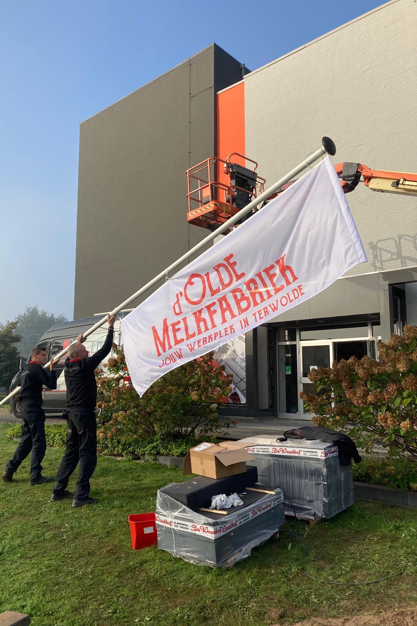 Mocht je vanuit Zutphen, Deventer of Apeldoorn richting Terwolde rijden, is d’Olde Melkfabriek al snel goed herkenbaar! Met een logo dat in de verre omtrek te zien is en drie banieren aan de weg, trekt het pand de nodige aandacht. Klaar om de ondernemers naar de Gemeente Voorst te krijgen voor betaalbare kantoorruimte en flexwerkplekken.