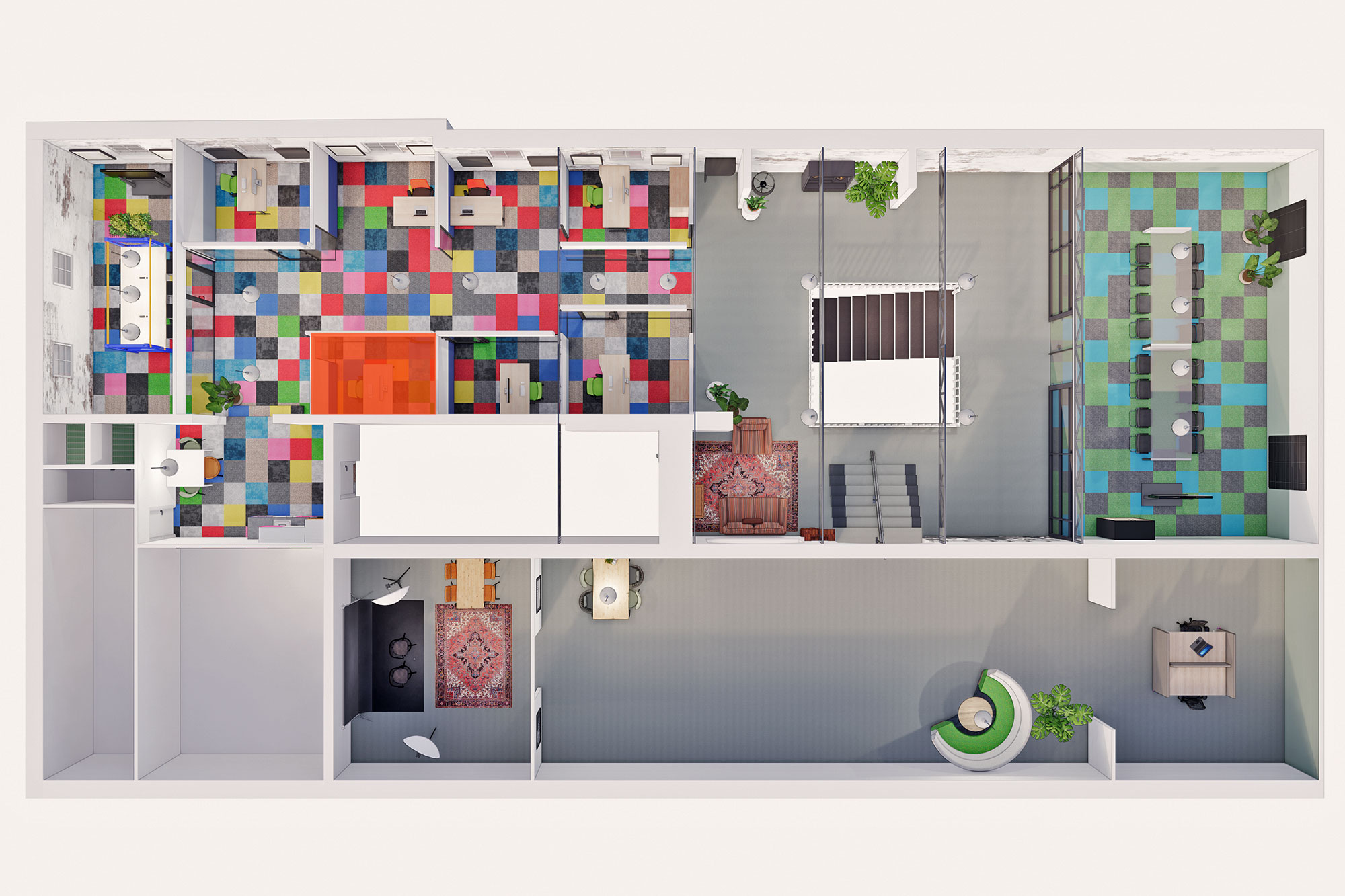 Kantoor 24 bevindt zich op de eerste verdieping van het pand. Op de verdieping zijn sanitaire voorzieningen en een compleet ingerichte pantry.
