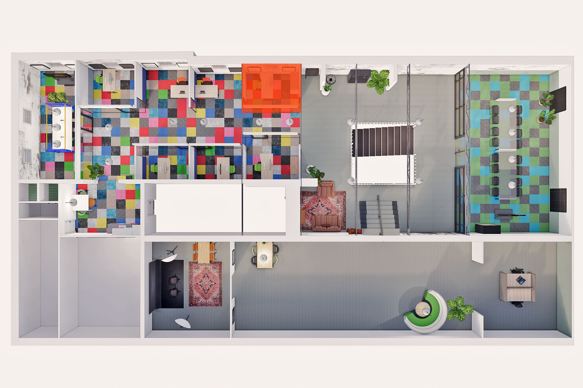 Kantoor 30 bevindt zich op de eerste verdieping van het pand. Op de verdieping zijn sanitaire voorzieningen en een compleet ingerichte pantry.