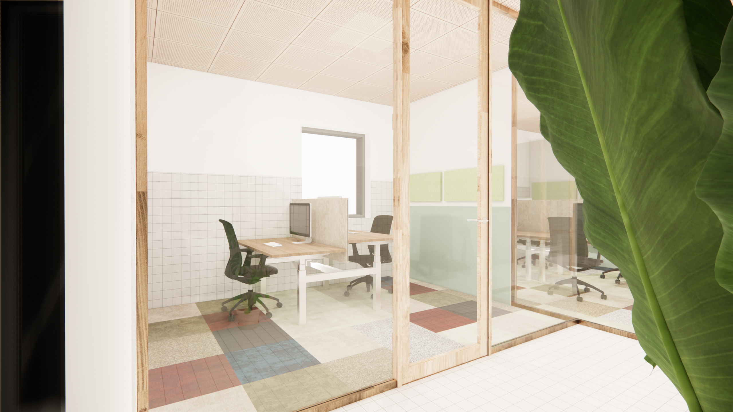 Dit kantoor is zoveel mogelijk ingericht met circulariteit in gedachten. Al het meubilair is in goede staat. Niet alleen het meubilair is Second Life, ook de tapijttegels en de opbouw van de pantry hebben een tweede leven gekregen. En zo zijn er nog vele andere materialen hergebruikt in d’Olde Melkfabriek.
